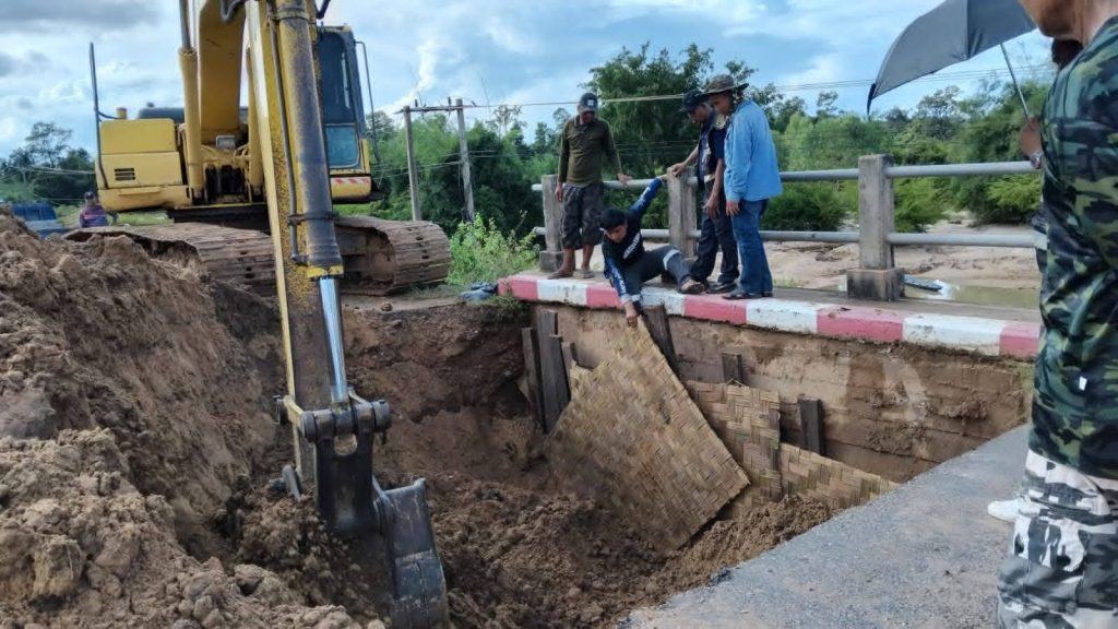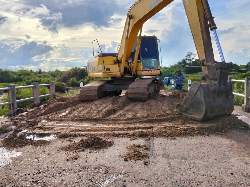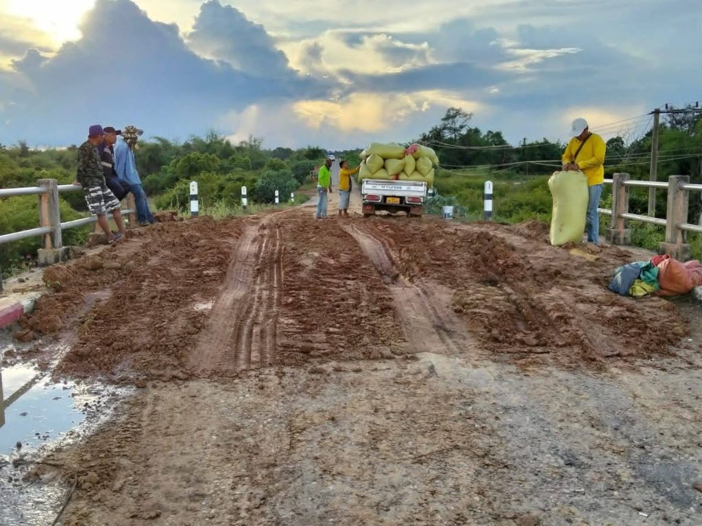 ຕໍ່ສະພາບການດັ່ງກ່າວ, ການນຳຂັ້ນເມືອງ ຈຶ່ງລົງແກ້ໄຂສຸກເສີນໃຫ້ສາມາດຜ່ານໄປ-ມາ ໄດ້ຊົ່ວຄາວ, ເຊິ່ງໜ້າວຽກທີ່ເຮັດແມ່ນ ຕອກເສົາເຂັມໄມ້ກັນດິນ, ຖົມດິນຫົວຂົວ, ຖົມຫີນໜ້າທາງ ໃຫ້ແໜ້ນໜາໄວ້ ໂດຍແມ່ນບໍລິສັດໄກ່ຄຳກໍ່ສ້າງ ຂົວທາງຈຳກັດເປັນຜູ້ຮັບສ້ອມແປງ ໃນມູນຄ່າ 350 ລ້ານກີບ, ເຊິ່ງປັດຈຸບັນສາມາດເດີນທາງໄປ-ມາໄດ້ແລ້ວ.