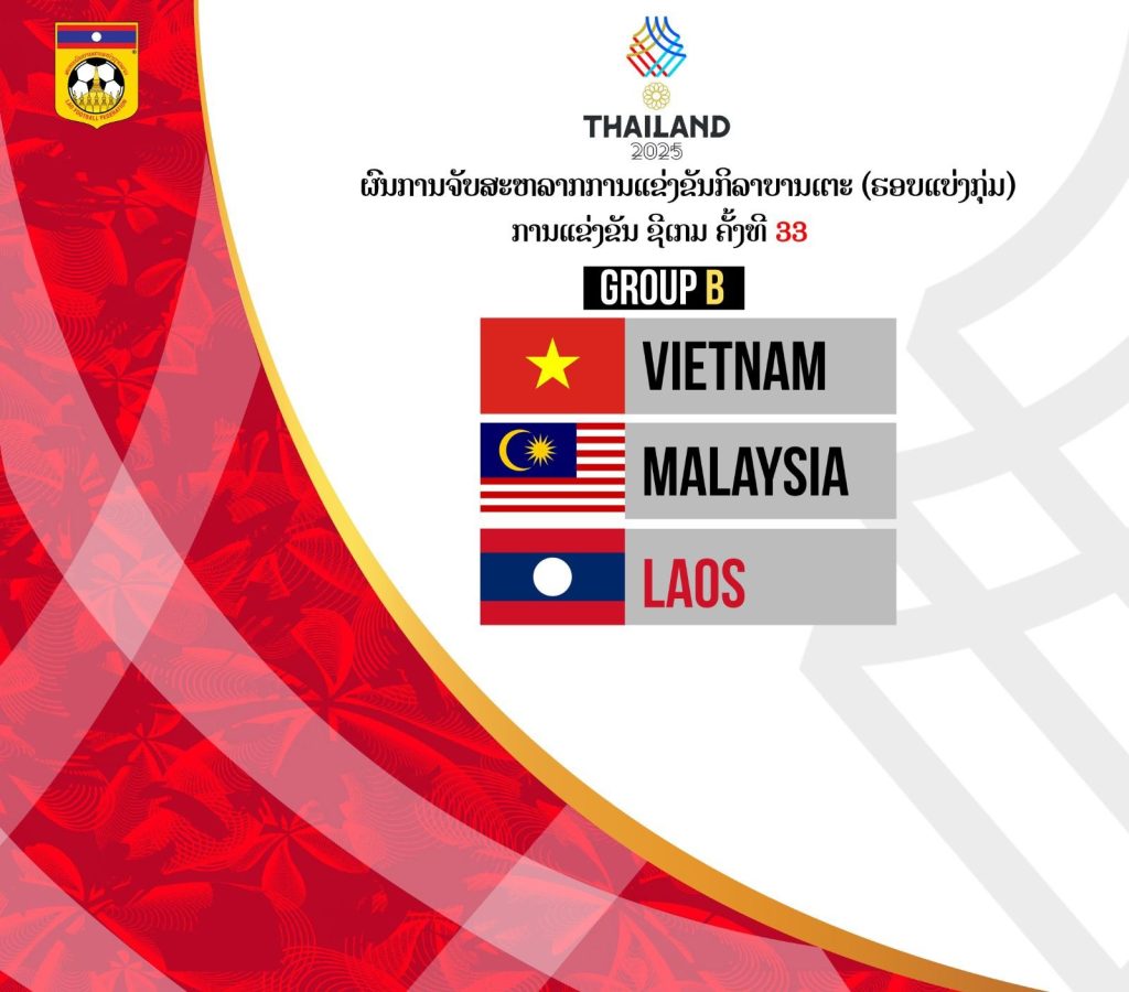 ເຕະບານຊາຍ ທີມຊາດລາວ ໄດ້ຖືກຈັດຢູ່ໃນກຸ່ມ B ຮ່ວມກັບຫວຽດນາມ ແລະ ມາເລເຊຍ, ສ່ວນກຸ່ມ A ປະກອບມີ: ທີມຊາດໄທ, ກຳປູເຈຍ ແລະ ຕີມໍ ເລສເຕ ແລະ ກຸ່ມC ປະກອບມີ: ທີມຊາດ ອິນໂດເນເຊຍ, ມຽນມາ, ຟີລິບປິນ ແລະ ສິງກະໂປ ໃນງານມະຫະກຳກິລາຊີເກມ 2025 ຄັ້ງທີ 33 ທີ່ປະເທດໄທ.