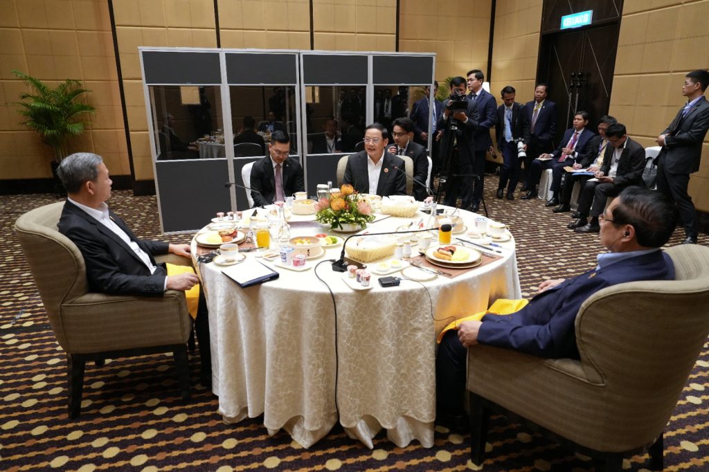 ຂປລ. ໃນວັນທີ 27 ຕຸລາ 2025, ທີ່ກົວລາລໍາເປີ ປະເທດມາເລເຊຍ, ທ່ານ ສອນໄຊ ສີພັນດອນ ນາຍຍົກລັດຖະມົນຕີ ແຫ່ງ ສປປ ລາວ ໄດ້ເຂົ້າຮ່ວມຮັບປະທານອາຫານເຊົ້າແບບເຮັດວຽກ ຮ່ວມກັບ ທ່ານ ຟ້າມ ມິງ ຈິງ ນາຍຍົກລັດຖະມົນຕີ ແຫ່ງ ສສ ຫວຽດນາມ ແລະ ສົມເດັດ ຮຸນ ມາແນດ ນາຍຍົກລັດຖະມົນຕີ ແຫ່ງ ຣາຊະອານາຈັກກໍາປູເຈຍ ຕາມການເຊື້ອເຊີນຂອງຝ່າຍກໍາປູເຈຍ ໃນໂອກາດເຂົ້າຮ່ວມກອງປະຊຸມສຸດຍອດອາຊຽນ ຄັ້ງທີ 47 ແລະ ບັນດາກອງປະຊຸມສຸດຍອດອື່ນໆທີ່ກ່ຽວຂ້ອງ ໃນວັນທີ 26-87 ຕຸລາ 2025.
