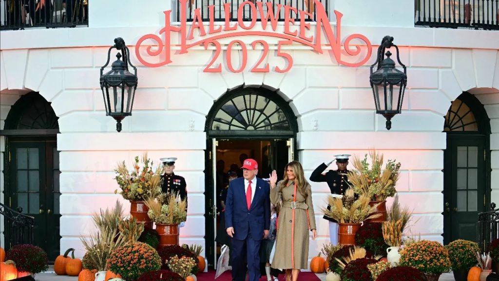 ວັນທີ 30 ຕຸລາ 2568 ປະທານາທິບໍດີ ໂດນັລ ທຣຳ ແລະ ນາງເມລາເນຍ ທຣຳ ສຸພາບສະຕີຫມາຍເລກໜຶ່ງຂອງສະຫະລັດຯ ເປີດທຳນຽບຂາວ ໃນນະຄອນຫຼວງວໍຊິງຕັນ ດີຊີ ຈັດກິດຈະກຳຕ້ອນຮັບວັນຮາໂລວີນ ແຈກຂະໜົມໃຫ້ເດັກນ້ອຍ ແລະ ຄອບຄົວເຈົ້າໜ້າທີ່ທຳນຽບຂາວທີ່ມາຮ່ວມງານກັນຢ່າງຄຶກຄັກ