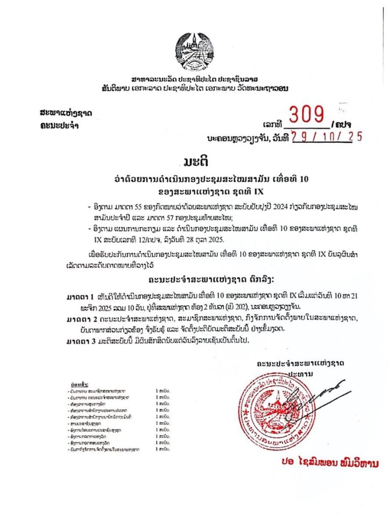 ມະຕິສະພາ ວ່າດ້ວຍການດຳເຊີນກອງປະຊຸມສະໄຫມສາມັນເທື່ອ 10 ຂອງສະພາແຫ່ງຊາດ ຊຸດທີ IX