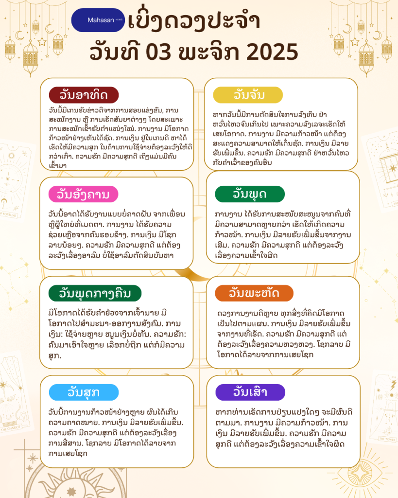 ດວງປະຈຳວັນທີ 03 ພະຈິກ 2025