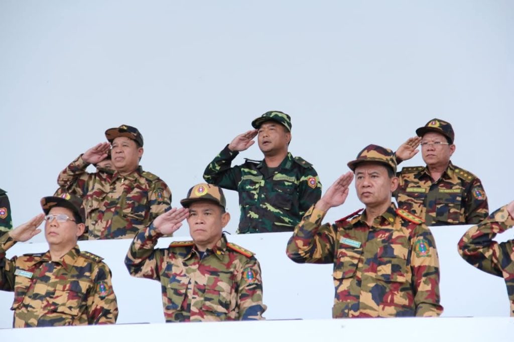 ພິທີສະແດງທົດລອງ ການສວນສະໜາມສະເຫຼີມສະຫຼອງ ວັນສະຖາປະນາ ສປປ ລາວ ຄົບຮອບ 50 ປີ ປະສານກ້ອນກຳລັງ ປກຊ-ປກສ ຄັ້ງທີ 1 ຈັດຂຶ້ນໃນວັນທີ 4 ພະຈິກຜ່ານມານີ້ ທີ່ວິທະຍາຄານນາຍທະຫານບົກກົມມະດຳ ໂດຍມີທ່ານ ພົນໂທ ຄຳກິ່ງ ຜຸຍຫຼ້າມະນີວົງ ຮອງລັດຖະ ມົນຕີກະຊວງປ້ອງກັນຄວາມສະຫງົບ, ມີ ທ່ານ ພົນຈັດຕະວາ ກົງທອງ ສຸຂະວົງ ຮອງຫົວໜ້າກົມໃຫຍ່ເສນາທິການກອງທັບ, ພ້ອມດ້ວຍບັນດາຄະນະນໍາກົມໃຫຍ່ ປກຊ-ປກສ ແລະ ພາກສ່ວນກ່ຽວຂ້ອງເຂົ້າຮ່ວມ.