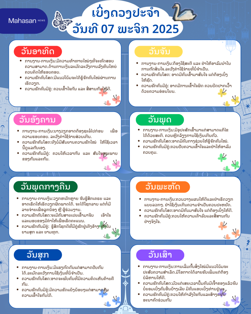 ເບິ່ງດວງປະຈຳ ວັນທີ 07 ພະຈິກ 2025