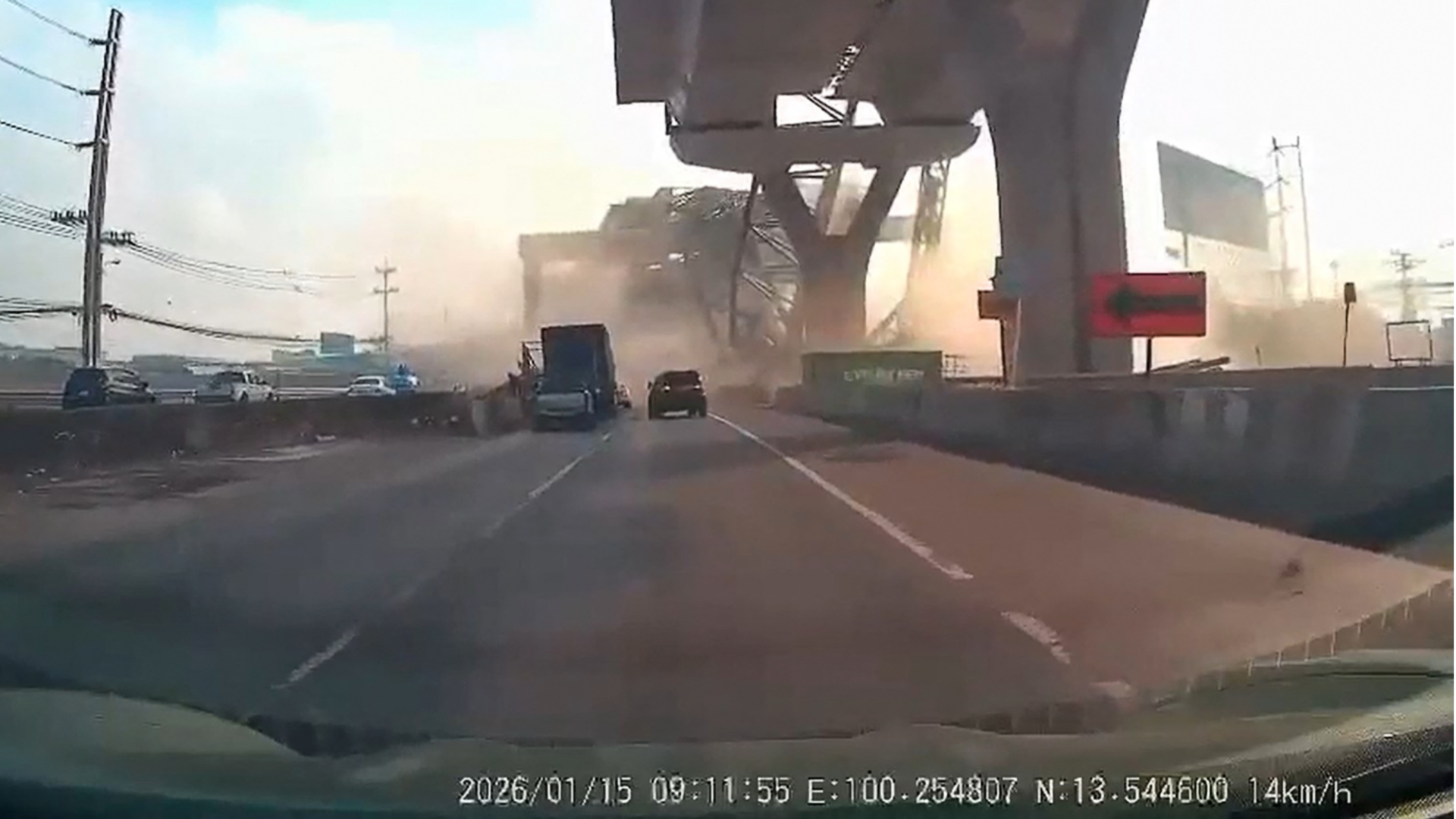 The accident occurred at around 9:10 am local time on Rama II Road, the key thoroughfare linking Bangkok and Samut Sakhon province, where the crane operating at an elevated expressway construction site collapsed onto passing vehicles.