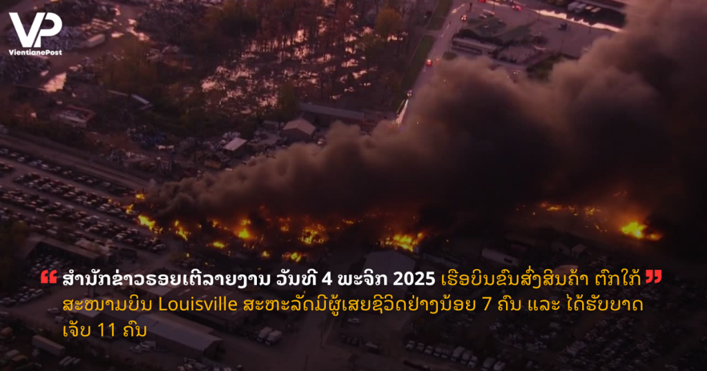 ສໍານັກຂ່າວຣອຍເຕີລາຍງານ ວັນທີ 4 ພະຈິກ 2025 ເຮືອບິນຂົນສົ່ງສິນຄ້າ ຕົກໃກ້ສະໜາມບິນ Louisville ສະຫະລັດມີຜູ້ເສຍຊີວິດຢ່າງນ້ອຍ 7 ຄົນ ແລະ ໄດ້ຮັບບາດເຈັບ 11 ຄົນ