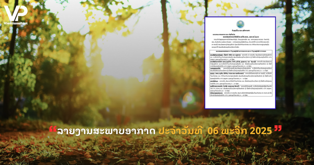 ລາຍງານສະພາບອາກາດປະຈໍາວັນທີ 06 ພະຈິກ 2025