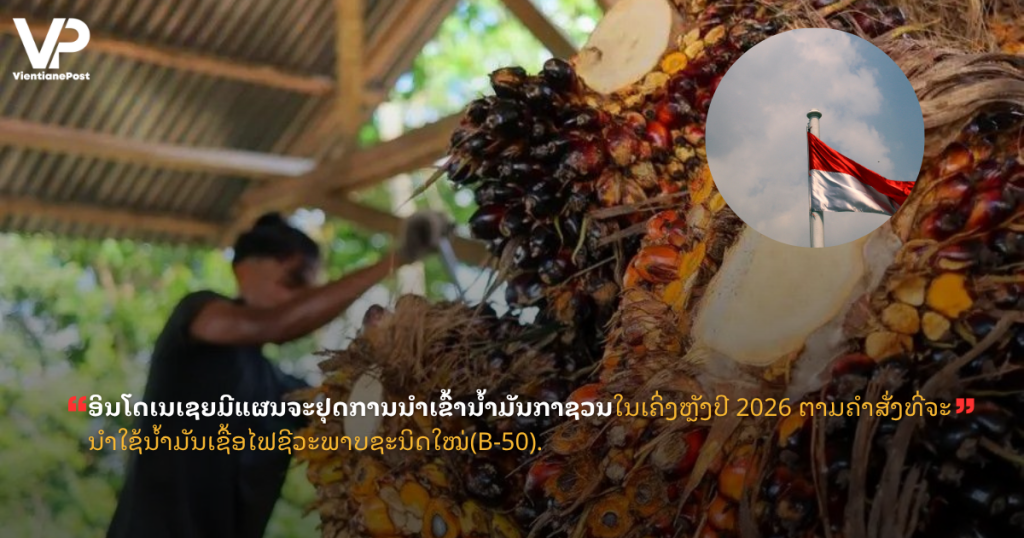 ອິນໂດເນເຊຍມີແຜນຈະຢຸດການນຳເຂົ້ານ້ຳມັນກາຊວນໃນເຄິ່ງຫຼັງປີ 2026 ຕາມຄຳສັ່ງທີ່ຈະນຳໃຊ້ນ້ຳມັນເຊື້ອໄຟຊີວະພາບຊະນິດໃໝ່(B-50).