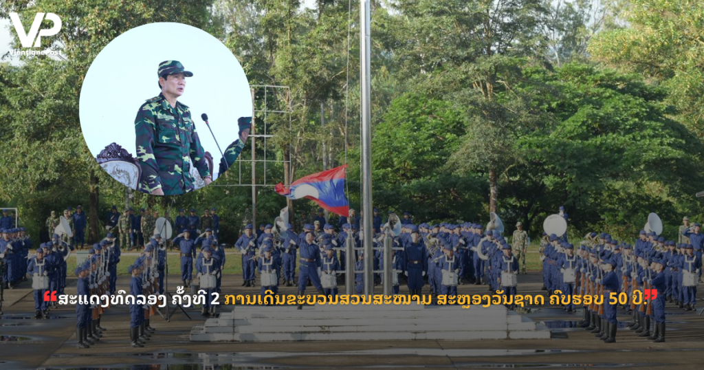 ວັນທີ 13 ຕຸລາ 2025 ຢູ່ທີ່ວິທະຍາຄານນາຍທະຫານບົກກົມມະດຳ ກົມໃຫຍ່ເສນາທິການກອງທັບ ກະຊວງປ້ອງກັນປະເທດ ຈັດຕັ້ງສະແດງປະສານທົດລອງ ຄັ້ງທີ 2 ການເດີນຂະບວນສວນສະໜາມ ເພື່ອຮັບປະກັນໃຫ້ແກ່ການຈັດຕັ້ງປະຕິບັດໜ້າວຽກ ການກະກຽມຈັດຕັ້ງງານໂຮມຊຸມນຸມ ແລະ ການຈັດຕັ້ງຫັດແອບສວນສະໜາມ ສະເຫຼີມສະຫຼອງ ວັນຊາດທີ 2 ທັນວາ ຄົບຮອບ 50 ປີ ໃຫ້ເປັນເອກະພາບ, ມີເນື້ອໃນ, ມີຄວາມໝາຍເລິກເຊິ່ງ ແລະ ສົມກຽດ ໂດຍການເຂົ້າຮ່ວມຂອງສະຫາຍ ພົນຕີ ສາຍໃຈ ກົມມະສິດ ຮອງລັດຖະມົນຕີກະຊວງປ້ອງກັນປະເທດ, ຫົວໜ້າກົມໃຫຍ່ເສນາທິການກອງທັບ, ຫົວໜ້າຄະນະຊີ້ນໍາການເດີນສວນສະໜາມ, ມີບັນດາຄະນະຊິ້ນຳ, ຄະນະນຳຊີ້ນຳແຕ່ລະກ້ອນກໍາລັງ ພ້ອມດ້ວຍພາກສ່ວນກ່ຽວຂ້ອງເຂົ້າຮ່ວມ. ພາບ-ຂ່າວ: ວິທະຍຸກອງທັບ