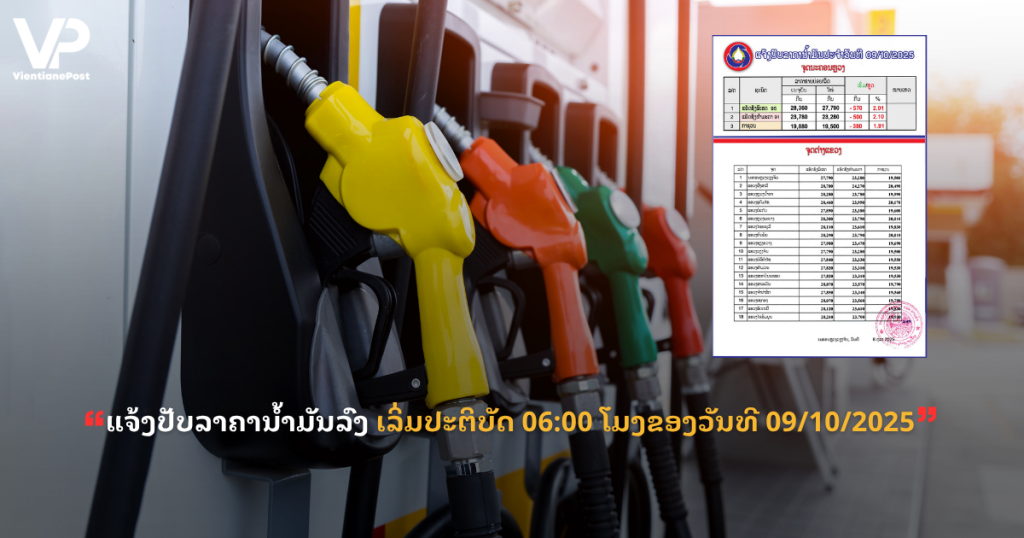 ແຈ້ງປັບລາຄານ້ຳມັນລົງ ເລິ່ມປະຕິບັດ 06:00 ໂມງຂອງວັນທີ 09/10/2025