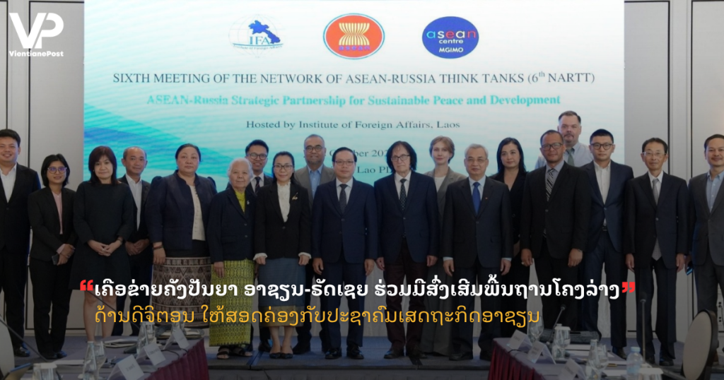 ເຄືອຂ່າຍຄັງປັນຍາ ອາຊຽນ-ຣັດເຊຍ ໄດ້ສົ່ງເສີມສັນຕິພາບ ແລະ ສະຖຽນລະພາບໃນພາກພື້ນ, ສົ່ງເສີມການຮ່ວມມືດ້ານເສດຖະກິດດີຈິຕອນ ແລະ ການນຳໃຊ້ເຕັກໂນໂລຊີຂໍ້ມູນຂ່າວສານ ແລະ ການສື່ສານ (ICTs) ໂດຍເນັ້ນໃສ່ການເສີມສ້າງ ແລະ ຊຸກຍູ້ ພື້ນຖານໂຄງລ່າງດ້ານດີຈິຕອນ ໃຫ້ສອດຄ່ອງກັບປະຊາຄົມເສດຖະກິດອາຊຽນ (AEC) Blueprint 2025. ໃນລະຫວ່າງວັນທີ 7-8 ຕຸລາ 2025 ຜ່ານມານີ້ ຢູ່ນະຄອນຫຼວງວຽງຈັນ, ສະຖາບັນການຕ່າງປະເທດ ໃນນາມຜູ້ປະສານງານເຄືອຂ່າຍຄັງປັນຍາອາຊຽນ-ຣັດເຊຍ (NARTT) ໂດຍການເປັນເຈົ້າພາບຮ່ວມກັບ ມະຫາວິທະຍາໄລ MGIMO ຣັດເຊຍ ໄດ້ຈັດກອງປະຊຸມເຄືອຂ່າຍຄັງປັນຍາອາຊຽນ-ຣັດເຊຍ ຄັ້ງທີ 6 ພາຍໃຕ້ຫົວຂໍ້ “ASEAN-Russia Strategic Partnership for Sustainable Peace and Development”, ໂດຍການໃຫ້ກຽດເຂົ້າຮ່ວມເປັນປະທານກອງປະຊຸມຂອງ ທ່ານ ໄມທອງ ທຳມະວົງສາ ຮອງລັດຖະມົນຕີກະ ຊວງການຕ່າງປະເທດ ພ້ອມດ້ວຍຄະນະສະຖາບັນ, ຄະນະພະແນກ, ນັກຄົ້ນຄວ້າ […]