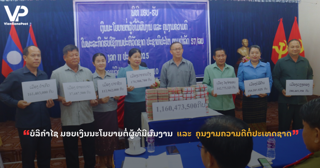 ບໍລິຄຳໄຊ ມອບເງິນນະໂຍບາຍຕໍ່ຜູ້ທີ່ມີຜົນງານ ແລະ ຄຸນງາມຄວາມດີຕໍ່ປະເທດຊາດ