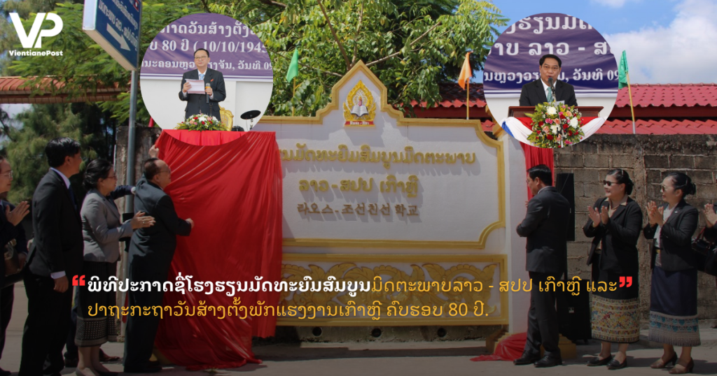 ພິທີປະກາດຊື່ໂຮງຮຽນມັດທະຍົມສົມບູນມິດຕະພາບລາວ – ສປປ ເກົາຫຼີ ແລະ ປາຖະກະຖາວັນສ້າງຕັ້ງພັກແຮງງານເກົາຫຼີ ຄົບຮອບ 80 ປີ.