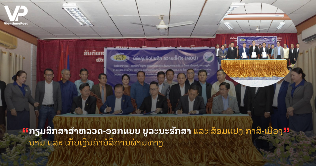 ອີງຕາມແຫລ່ງຂ່າວຈາກ ແຂວງວຽງຈັນ ໃຫ້ຮູ້ວ່າ: ພິທີເຊັນບົດບັນທຶກຄວາມເຂົ້າໃຈ ເພື່ອສຶກສາສຳຫລວດ-ອອກແບບ ໂຄງການບູລະນະຮັກສາ ແລະ ສ້ອມແປງທາງເລກທີ 22 ເລີ່ມແຕ່ ສາມແຍກທາງ 13 ເໜືອ ບ້ານວຽງແກ້ວ ເມືອງກາສີ ແຂວງວຽງຈັນ ຫາ ທາງແຍກ ບ້ານປົ່ງດົງ ເມືອງນານ ແຂວງຫລວງພະບາງ ໄລຍະທາງ 68,5 ກິໂລແມັດ, ໃນຮູບແບບປະສົມປະສານແບບມອບເໝົາທີ່ອີງຕາມຜົນໄດ້ຮັບຂອງວຽກ ແລະ ເກັບເງິນຄ່າບໍລິການຜ່ານທາງຕາມເສັ້ນທາງສາທາລະນະ ຈັດຂຶ້ນໃນວັນທີ 03 ຕຸລາ 2025 ທີ່ພະແນກໂຍທາທິການ ແລະ ຂົນສົ່ງ ແຂວງວຽງຈັນ ລະຫວ່າງ ພະແນກໂຍທາທິການ ແລະ ຂົນສົ່ງ ແຂວງວຽງຈັນ, ພະແນກໂຍທາທິການ ແລະ ຂົນສົ່ງ ແຂວງຫລວງພະບາງ ກັບ ບໍລິສັດ ພັດທະນາສາມຫລຽມເສດຖະກິດຄົບວົງຈອນ ຈຳກັດຜູ້ດຽວ ຕາງໜ້າລົງນາມໂດຍວຽງຈັນ ໂດຍ ທ່ານ ຄຳມອນ ສີສອນສັກ ຫົວໜ້າພະແນກໂຍທາທິການ […]