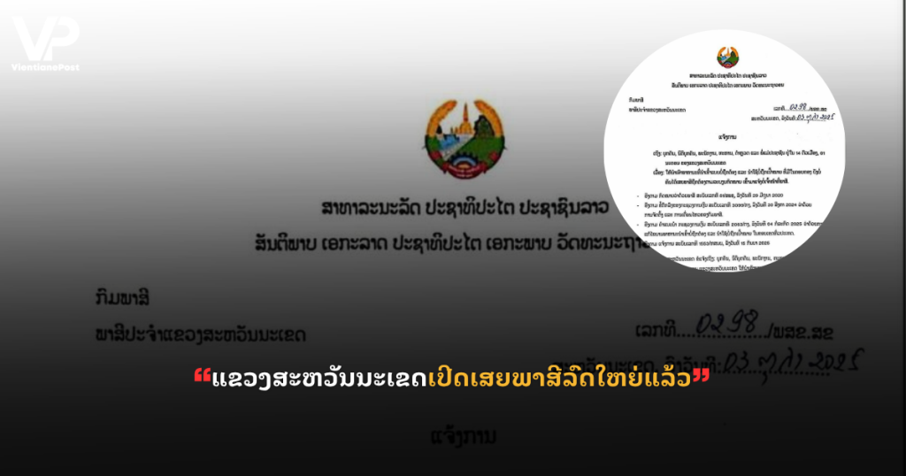 ອີງຕາມແຈ້ງການຂອງກົມພາສີປະຈຳແຂວງສະຫວັນນະເຂດ ລົງເມື່ອວັນທີ 3 ຕຸລາ 2025 ກ່ຽວກັບ ໃຫ້ນໍາເອົາພາຫານະທີ່ນໍາເຂົ້າແບບບໍ່ຖືກຕ້ອງ ແລະ ນຳໃຊ້ບໍ່ຖືກເປົ້າໝາຍ ທີ່ມີໃນຄອບຄອງ ແລະ ຍັງບໍ່ທັນໄດ້ເສຍພາສີຖືກຕ້ອງຕາມລະບຽບກົດໝາຍ ເຂົ້າມາແຈ້ງຕໍ່ເຈົ້າໜ້າທີ່ພາສີ ພາສີປະຈຳແຂວງສະຫວັນນະເຂດ ຂໍແຈ້ງເຖິງ: ບຸກຄົນ, ນິຕິບຸກຄົນ, ພະນັກງານ, ທະຫານ, ຕໍາຫຼວດ ແລະ ພໍ່ແມ່ ປະຊາຊົນ ໃນ 14 ຕົວເມືອງ, 01 ນະຄອນ ແຂວງສະຫວັນນະເຂດ ໃຫ້ນໍາເອົາພາຫານະທີ່ນໍາເຂົ້າແບບບໍ່ຖືກຕ້ອງ ແລະ ນຳ ໃຊ້ບໍ່ຖືກເປົ້າໝາຍ ທີ່ມີໃນຄອບຄອງ ແລະ ຍັງບໍ່ທັນໄດ້ເສຍພາສີຖືກຕ້ອງຕາມລະບຽບກົດໝາຍ ເຂົ້າມາແຈ້ງຕໍ່ເຈົ້າໜ້າທີ່ ພາສີ, ຄະນະກຳມະການແກ້ໄຂພາຫານະນຳເຂົ້າບໍ່ຖືກຕ້ອງຂັ້ນແຂວງ. ເລີ່ມແຕ່ວັນທີ 06 ຕຸລາ 2025 ຈົນເຖິງ 30 ພະຈິກ 2025 ສະຖານທີ່: ຫ້ອງການພາສີປະຈາແຂວງສະຫວັນນະເຂດ. ດັ່ງນັ້ນ ຈຶ່ງແຈ້ງມາຍັງບັນດາທ່ານເພື່ອຮັບຊາບ ແລະ ຈັດຕັ້ງປະຕິບັດຢ່າງເຂັ້ມງວດ. […]