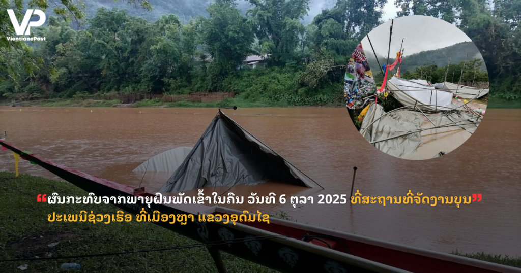 ຜົນກະທົບຈາກພາຍຸຝົນພັດເຂົ້າໃນຄືນ ວັນທີ 6 ຕຸລາ 2025 ທີ່ສະຖານທີ່ຈັດງານບຸນປະເພນີຊ່ວງເຮືອ ທີ່ເມືອງຫຼາ ແຂວງອຸດົມໄຊ