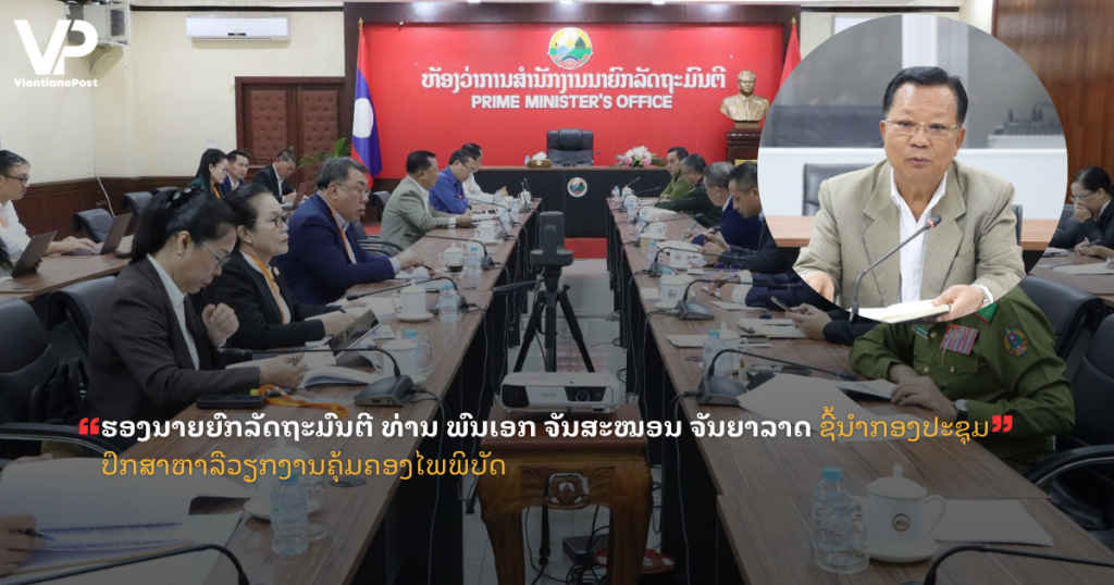 ຮອງນາຍຍົກລັດຖະມົນຕີ ທ່ານ ພົນເອກ ຈັນສະໝອນ ຈັນຍາລາດ ຊີ້ນຳກອງປະຊຸມ ປຶກສາຫາລືວຽກງານຄຸ້ມຄອງໄພພິບັດ