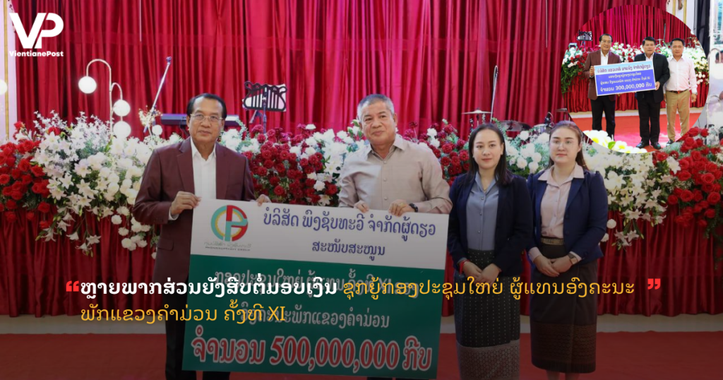 ຫຼາຍພາກສ່ວນຍັງສືບຕໍ່ມອບເງິນ ຊຸກຍູ້ກອງປະຊຸມໃຫຍ່ ຜູ້ແທນອົງຄະນະພັກແຂວງຄໍາມ່ວນ ຄັ້ງທີ XI
