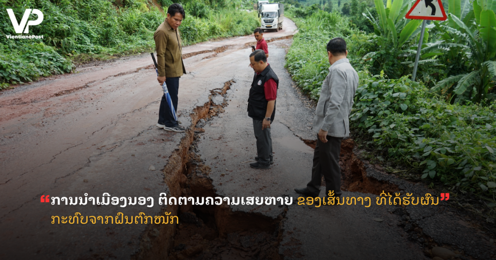 ການນຳເມືອງນອງ ຕິດຕາມຄວາມເສຍຫາຍ ຂອງເສັ້ນທາງ ທີ່ໄດ້ຮັບຜົນກະທົບຈາກຝົນຕົກໜັກ