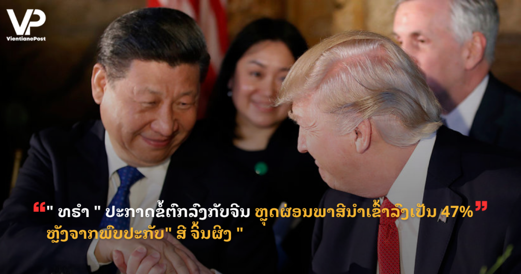 ” ທຣຳ ” ປະກາດຂໍ້ຕົກລົງກັບຈີນ ຫຼຸດຜ່ອນພາສີນຳເຂົ້າລົງເປັນ 47% ຫຼັງຈາກພົບປະກັບ” ສີ ຈິ້ນຜິງ “