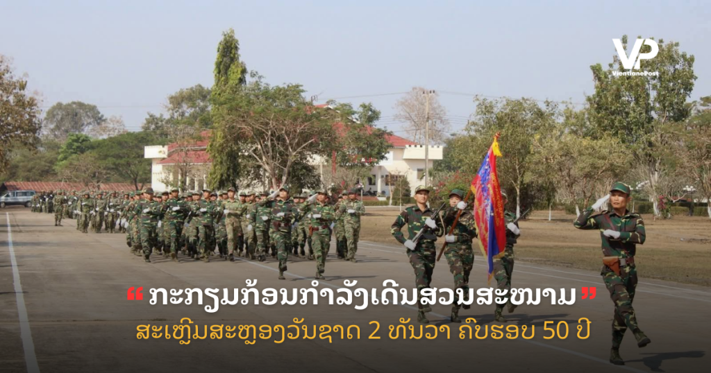 ກະກຽມກ້ອນກຳລັງເດີນສວນສະໜາມສະເຫຼີມສະຫຼອງວັນຊາດ 2 ທັນວາ ຄົບຮອບ 50 ປີ