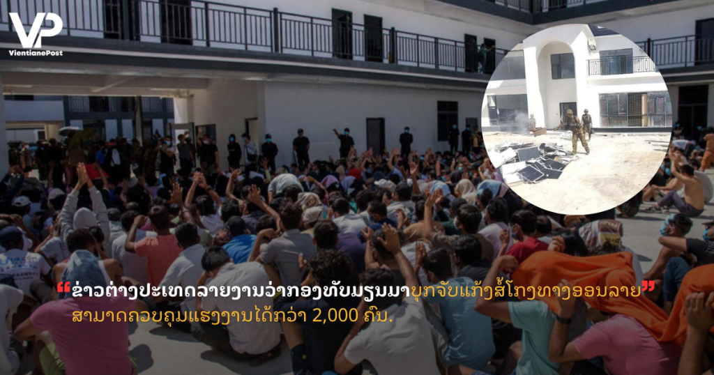 ຂ່າວຕ່າງປະເທດລາຍງານວ່າກອງທັບມຽນມາບຸກຈັບແກ້ງສໍ້ໂກງທາງອອນລາຍ ສາມາດຄວບຄຸມແຮງງານໄດ້ກວ່າ 2,000 ຄົນ.