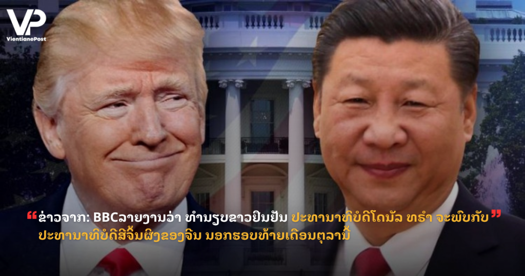 ຂ່າວຈາກ: BBCລາຍງານວ່າ ທຳນຽບຂາວຢືນຢັນ ປະທານາທິບໍດີໂດນັລ ທຣຳ ຈະພົບກັບ ປະທານາທິບໍດີສີຈິ້ນຜິງຂອງຈີນ ນອກຮອບທ້າຍເດືອນຕຸລານີ້