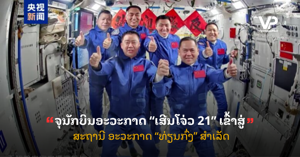ວິທະຍຸ-ໂທລະພາບ ສູນກາງຈີນ, ແຫລ່ງຂ່າວ ຈາກຫ້ອງການ ໂຄງ ການ ການບິນ ອະວະກາດ ບັນທຸກຄົນ ຂອງສປ ຈີນ ແຈ້ງໃຫ້ຮູ້ວ່າ: ພາຍ ຫລັງ ຍານອະວະກາດ ບັນທຸກຄົນ ແລະ ສະຖານີ ອະວະ ກາດຈີນ ສໍາເລັດ ການເຊື່ອມຕໍ່ ດ້ວຍຕົນເອງ ຢ່າງວ່ອງໄວ, ຈຸນັກບິນ ອະວະກາດ “ເສີນໂຈ່ວ 21” ໄດ້ເຂົ້າສູ່ຫ້ອ ງປະຕິບັດງານ ຈາກຫ້ອງຂັບ. ເວລາ 4 ໂມງ 58 ນາທີ ຂອງວັນທີ 1 ພະຈິກນີ້ ຕາມເວລາ ປັກກິ່ງ, ຈຸນັກບິນອະວະກາດ “ເສີນໂຈ່ວ 20” ທີ່ພວມປະຕິບັດໜ້າທີ່ ຢູ່ສະຖານີ ອະວະກາດຈີນ ໄດ້ເປີດປະຕູ ຢ່າງ ສໍາເລັດຜົນ ເພື່ອຕ້ອນ ຮັບຈຸນັກບິນ ອະວະກາດ “ເສີນໂຈ່ວ 21” […]