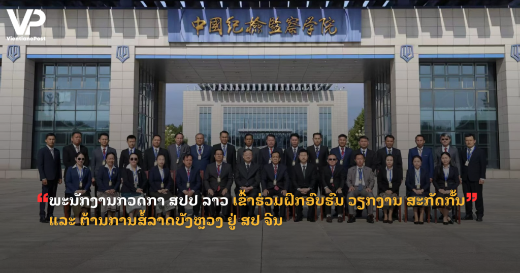 ໃນລະຫວ່າງວັນທີ 17-25 ຕຸລາ 2025 ພະນັກງານກວດກາ ສປປ ລາວ ເຂົ້າຮ່ວມຝຶກອົບຮົມ ວຽກງານ ສະກັດກັ້ນ ແລະ ຕ້ານການສໍ້ລາດບັງຫຼວງ ຢູ່ ສປ ຈີນ ຢູ່ສະຖາບັນກວດກາວິໄນ ແລະ ກວດກາລັດ ສປ ຈີນ ຈຳນວນ ທັງໝົດ 30 ທ່ານ, ຍິງ 07 ທ່ານ; ໃນນີ້, ມີພະນັກງານຈາກອົງການກວດກາແຫ່ງລັດ ຈໍານວນ 15 ທ່ານ, ຍິງ 04 ທ່ານ, ອົງການກວດກາລັດກະຊວງ-ອົງການ ຈໍານວນ 05 ທ່ານ, ຍິງ 02 ທ່ານ ແລະ ທ້ອງຖິ່ນ ຈໍານວນ 10 ທ່ານ, ຍິງ 01 ທ່ານ. ນໍາພາໂດຍທ່ານ ສຸກຄໍາເພັດ ເຮືອງບຸດສີ ກຳມະການປະຈໍາພັກ, […]