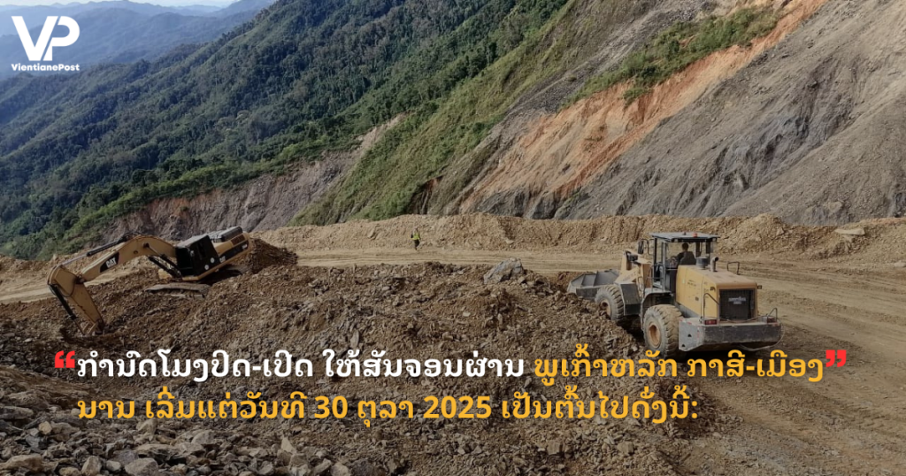 ກຳນົດໂມງປິດ-ເປີດ ໃຫ້ສັນຈອນຜ່ານ ພູເກົ້າຫລັກ ກາສີ-ເມືອງນານ ເລີ່ມແຕ່ວັນທີ 30 ຕຸລາ 2025 ເປັນຕົ້ນໄປດັ່ງນີ້: