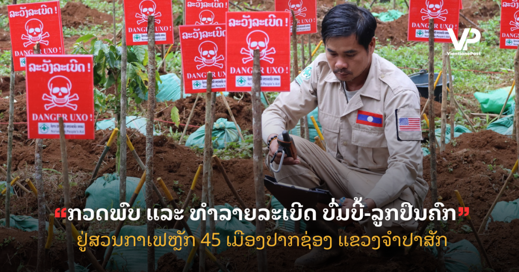 ກວດພົບ ແລະ ທຳລາຍລະເບີດ ບົ່ມບີ້-ລູກປືນຄົກ ຢູ່ສວນກາເຟຫຼັກ 45 ເມືອງປາກຊ່ອງ ແຂວງຈຳປາສັກ.