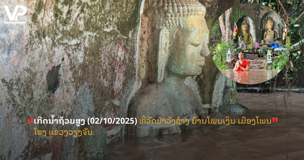 ນໍ້າຖ້ວມສູງໃນວັຍທີ (02/10/2025) ທີ່ວັດປ່າວັງຊ້າງ ບ້ານໂພນເງິນ ເມືອງໂພນໂຮງ ແຂວງວຽງຈັນ.