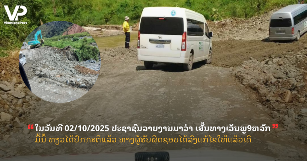 ໃນວັນທີ 02/10/2025 ປະຊາຊົນລາຍງານມາວ່າ ເສັ້ນທາງເວັນພູ9ຫລັກມື້ນີ້ ທຽວໄດ້ປົກກະຕິແລ້ວ ທາງຜູ້ຮັບຜິດຊອບໄດ້ລົງແກ້ໄຂໃຫ້ແລ້ວເດີ