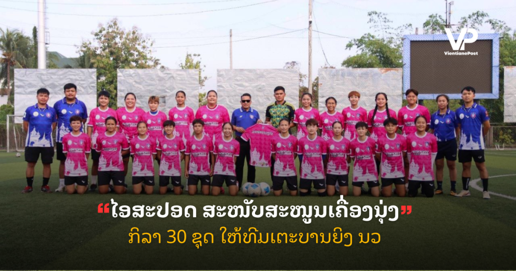 ຮ້ານຈຳໜ່າຍເຄື່ອງກິລາຊື່ດັງໃນ ສປປ ລາວ ໄອສະປອດ (Ai-Sport) ຜະລິດຕະພັນເຄື່ອງກິລາພິມລາຍ ໃຫ້ການສະໜັບສະໜູນເຄື່ອງຝຶກຊ້ອມກິລາເຕະບານຍິງ ຈຳນວນ 30 ຊຸດ ລວມມູນຄ່າ 6 ລ້ານກວ່າກີບ ໃຫ້ແກ່ທີມນັກກິລາເຕະບານຍິງ ນະຄອນຫຼວງວຽງຈັນ ຫຼື ນວ ເພື່ອກຽມຄວາມພ້ອມປ້ອງກັນແຊັມຫຼຽນຄຳ ສະໄໝທີ 7 ໃນງານມະຫະກຳກິລາແຫ່ງຊາດ ຄັ້ງທີ XII ທີ່ນະຄອນຫຼວງວຽງຈັນ ຮັບກຽດເປັນເຈົ້າພາບ ລະຫວ່າງວັນທີ 15-25 ພະຈິກນີ້. ພິທີມອບ-ຮັບການສະໜັບສະໜູນ ໄດ້ຈັດຂຶ້ນ ໃນວັນທີ 22 ຕຸລາ ຜ່ານມາ ທີ່ສະ ໜາມກິລາເຕະບານຫຍ້າທຽມ ລ້ານຊ້າງ ເຂດບ້ານໜອງໄຮ ເມືອງຫາດຊາຍຟອງ ນະຄອນຫຼວງວຽງຈັນ. ກ່າວມອບໂດຍທ່ານ ໄພລະຄອນ ບຸນວິຊຽນ ເຈົ້າຂອງຮ້ານ ເຄື່ອງກິລາພິມລາຍ ໄອສະປອດ (Ai-Sport) ແລະ ຕາງໜ້າກ່າວຮັບໂດຍທ່ານ ບຸນມີ ໄຊຍະວົງ ຄະນະບໍລິຫານງານສະຫະພັນບານເຕະນະຄອນຫຼວງວຽງຈັນ ທັງເປັນຜູ້ຈັດການທີມເຕະບານຍິງ […]
