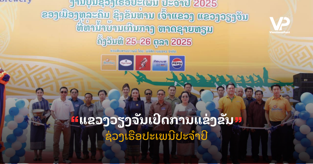 ໃນວັນທີ 26 ຕຸລານີ້ ທີ່ທ່ານ້ຳບ້ານເກິນກາງ ຫາດຊາຍທຽມ ເມືອງທຸລະຄົມ ແຂວງວຽງຈັນ ໄດ້ຈັດການແຂ່ງຂັນຊ່ວງເຮືອປະເພນີ ປະຈໍາປີ 2025 ຂຶ້ນໂດຍການເຂົ້າຮ່ວມຂອງທ່ານ ພູວົງ ບຸນຊູ ຮອງເຈົ້າແຂວງວຽງຈັນ, ມີທ່ານ ນາງ ວົງເດືອນ ວັດຕະໂສ ເລຂາເມືອງ ທຸລະຄົມ ພ້ອມດ້ວຍ ປະຊາຊົນເປັນຈຳນວນຫຼວງຫຼາຍເຂົ້າຮ່ວມຊົມ. ທ່ານ ບຸນເລີດ ສີຫາປັນຍາ ປະທານຄະນະກຳມະການປົກຄອງເມືອງທຸລະຄົມໄດ້ລາຍງານວ່າ: ງານບຸນຊ່ວງເຮືອປີນີ້, ໄດ້ກໍານົດຄົບງັນ 7 ວັນ. ໃນນັ້ນ, ວັນທີ 25 ຕຸລາ 2025 ແຂ່ງຂັນກິລາເຮືອຊ່ວງປະເພດ 12 ສີພາຍ, ສໍາລັບມື້ນີ້ກົງກັບວັນທີ 26 ຕຸລາ 2025 ເປັນມື້ເປີດງານບຸນ ແລະ ແຂ່ງຂັນຊ່ວງເຮືອຍາວປະເພນີ ປະເພດ 55 ສີພາຍ, ຊຶ່ງລ້ວນແລ້ວແຕ່ແມ່ນເຮືອເຂດບ້ານລ້ອງງື່ມ, ກິດຈະກໍາພາຍໃນງານປະກອບມີຕະຫຼາດນັດວາງສະແດງຂາຍສິນຄ້າປະເພດອຸປະໂພກ ແລະ ບໍລິໂພກ, ສິນຄ້າໂອດ໋ອບ, […]